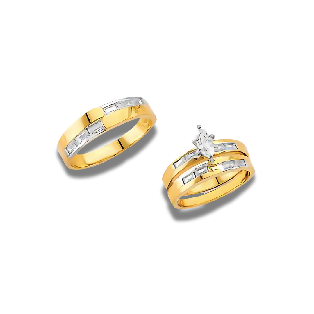 Solid 14k gold engagement trio ring set.
