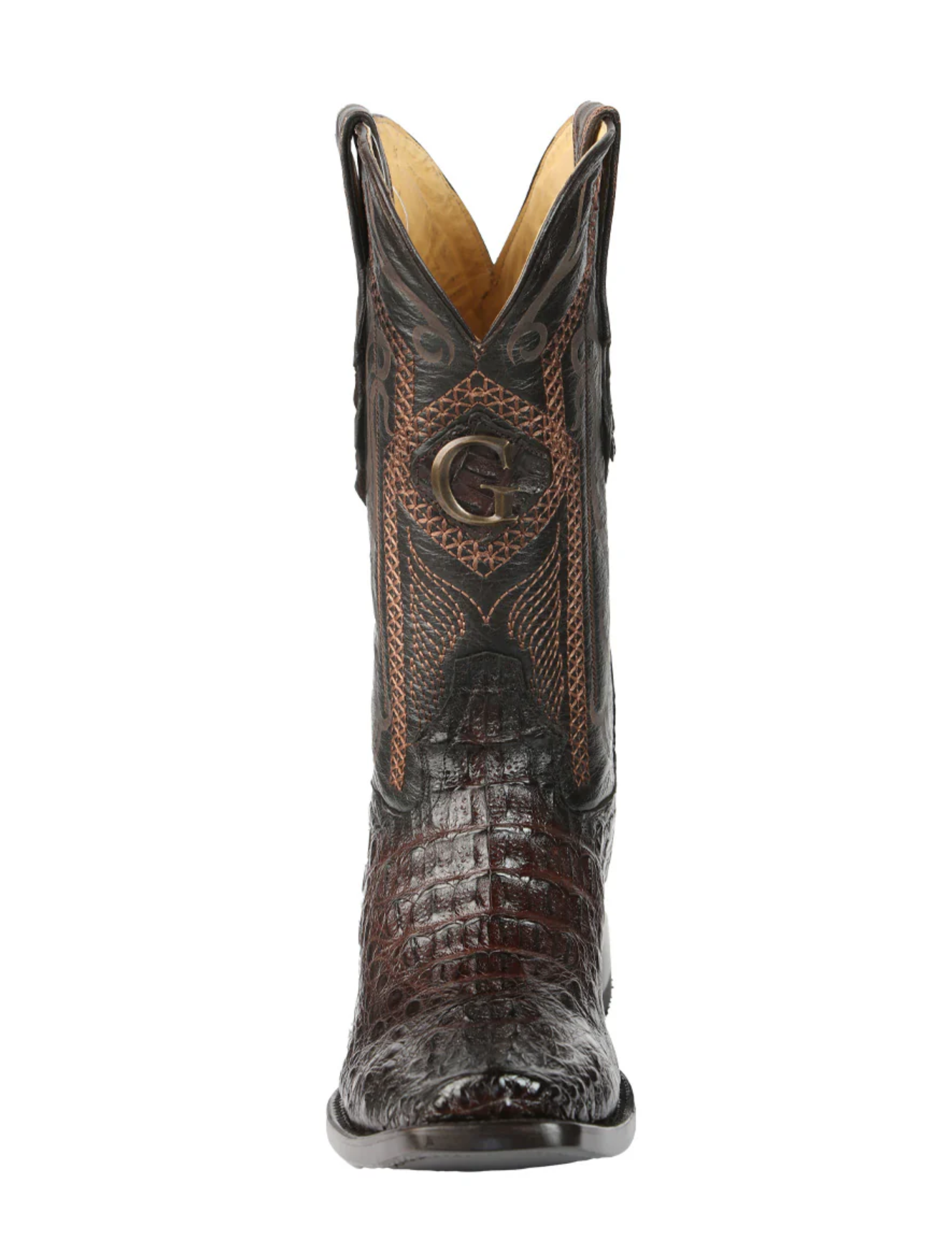 Exotic caiman leather boots featuring distinctive scale patterns and exceptional durability. The natural texture and rich finish make these boots a standout choice for those seeking authentic Western luxury.