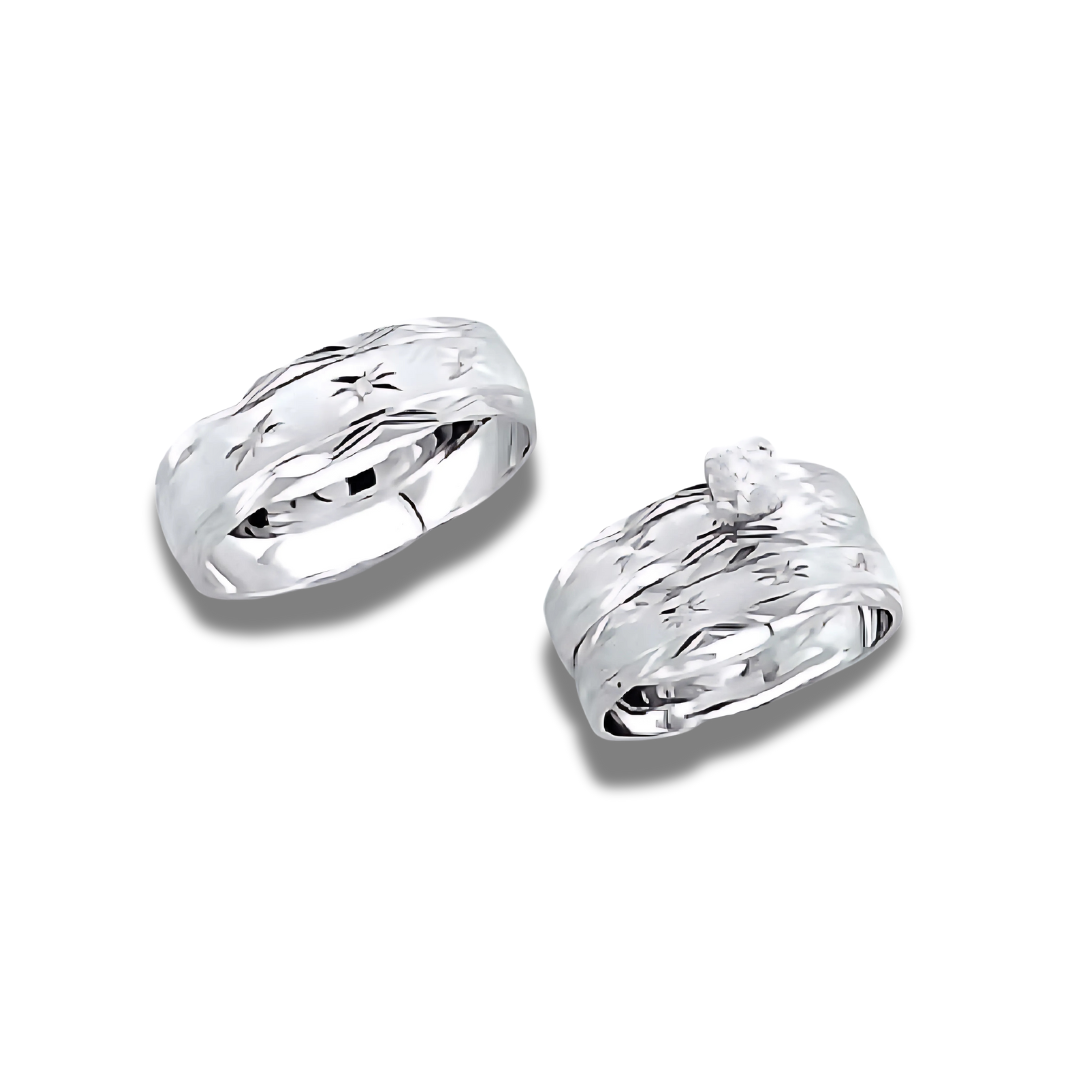 Solid 14k gold engagement trio ring set.