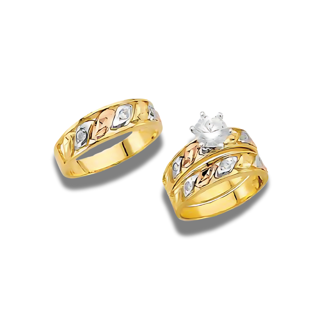 Solid 14k gold engagement trio ring set.