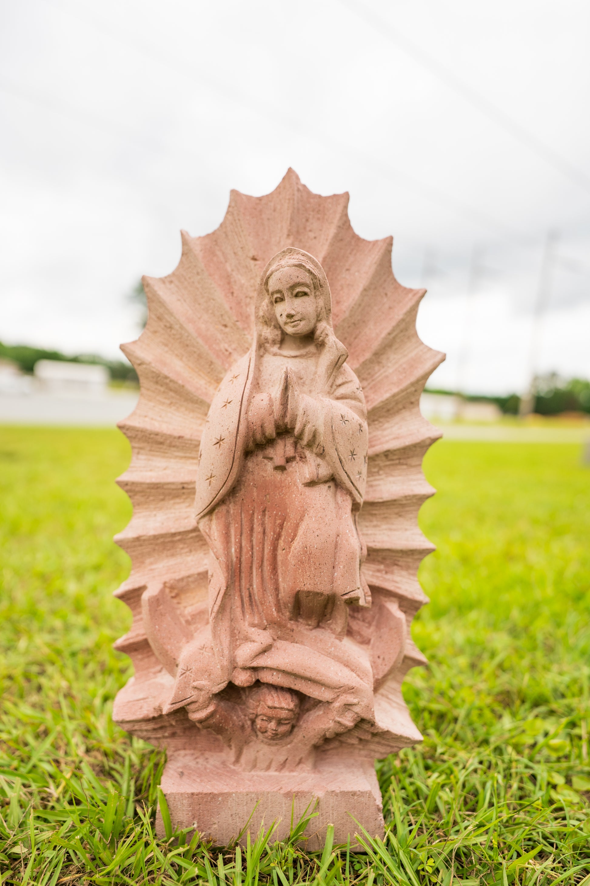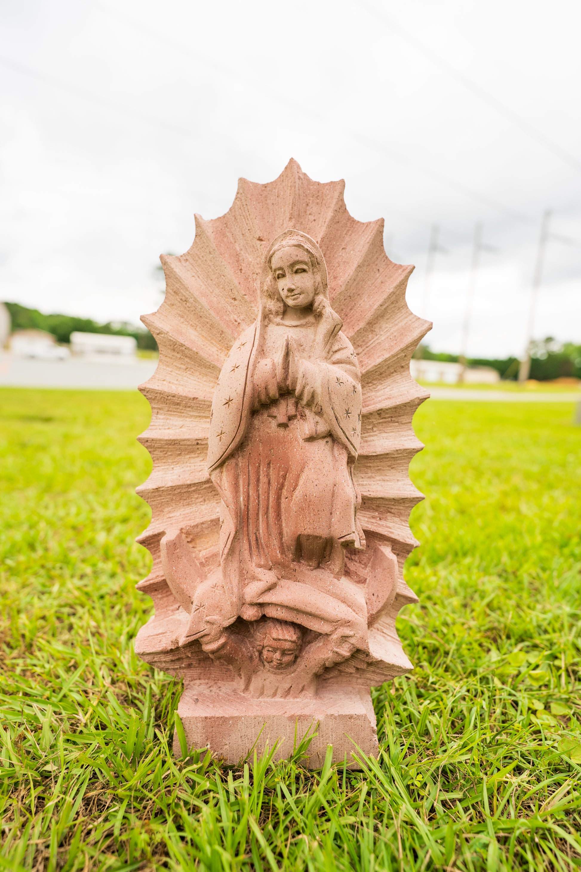 The holy figure stands 21” tall. Slight imperfections are part of the process. Indoor or covered use is recommended. No two are identical.