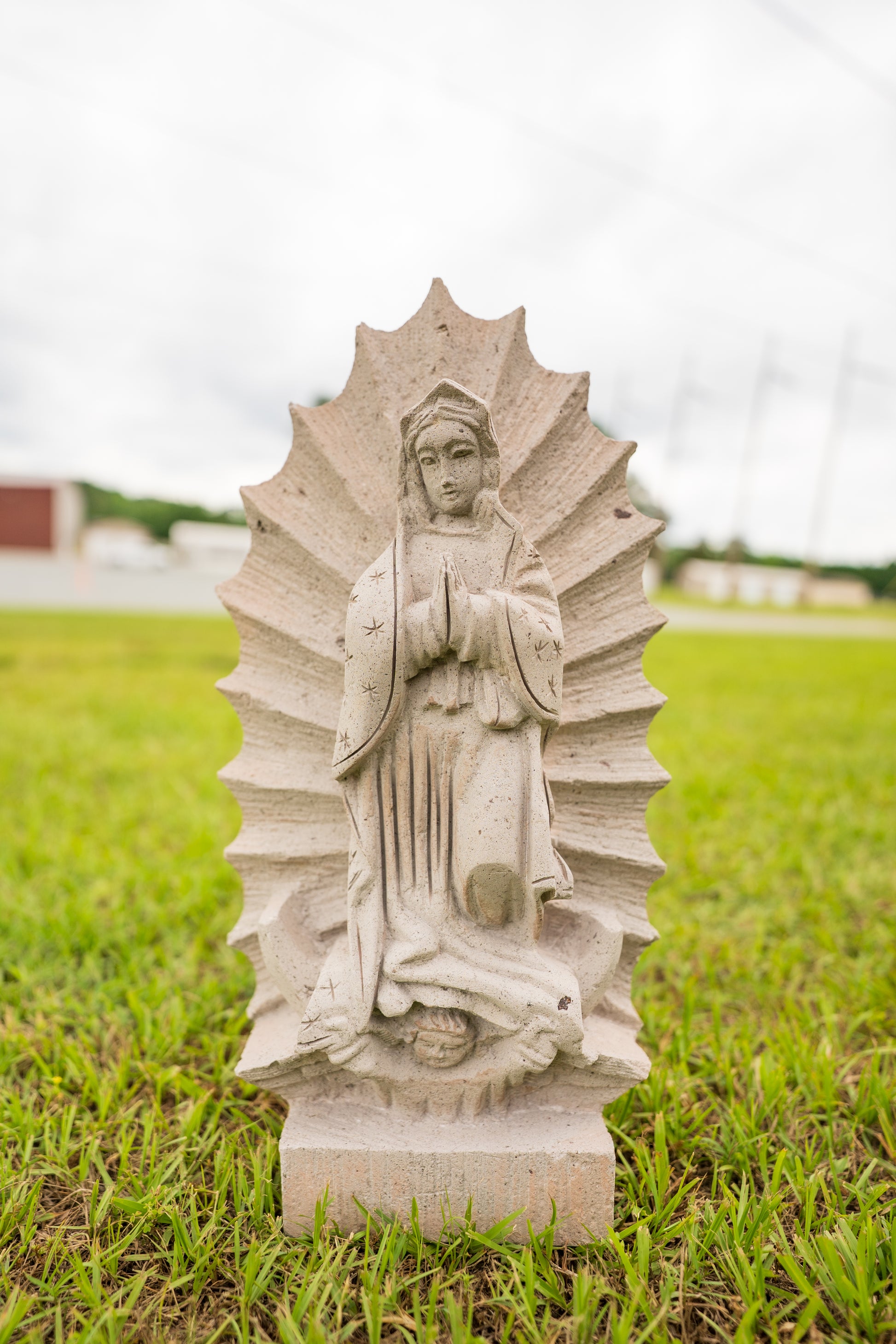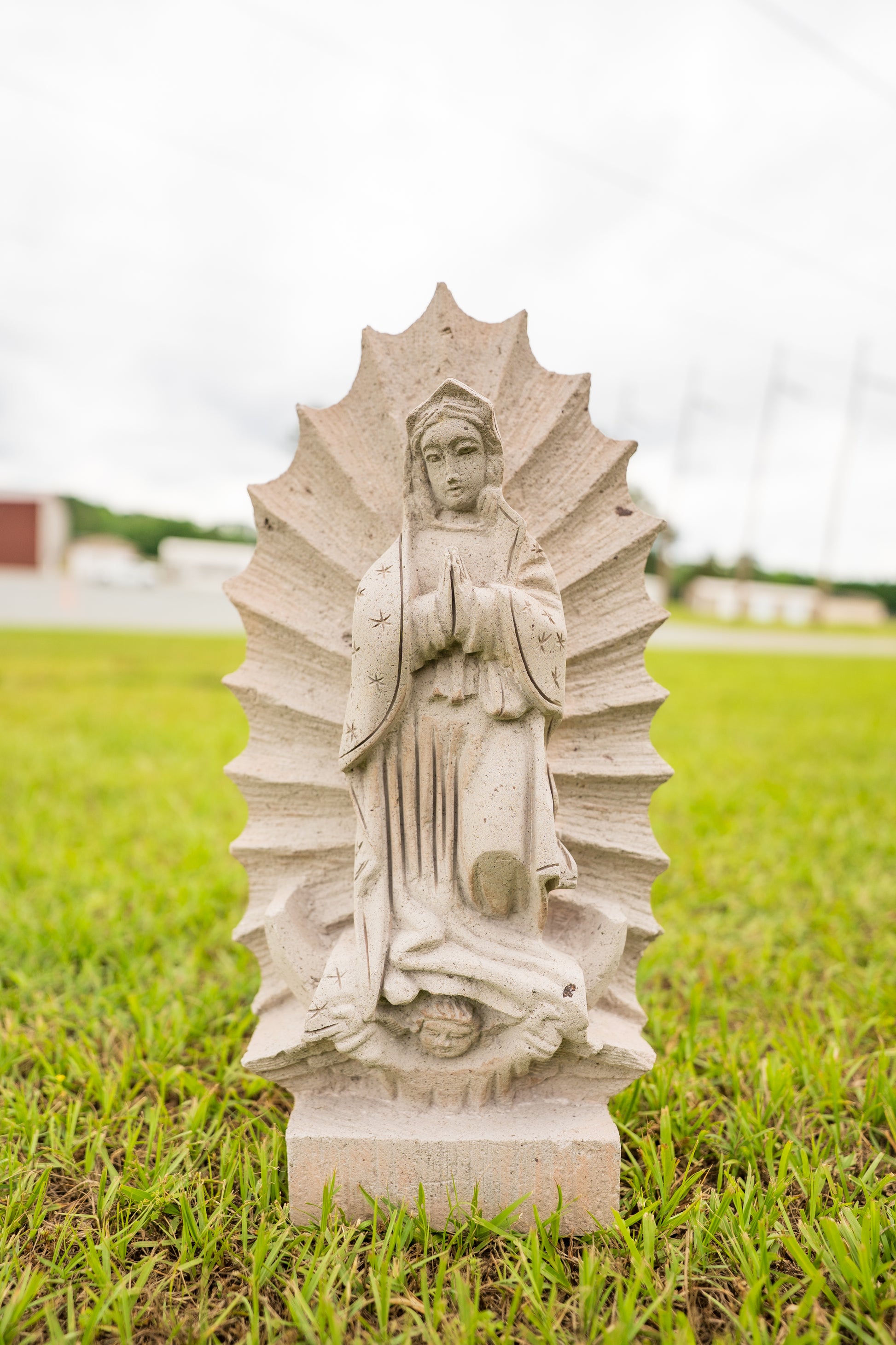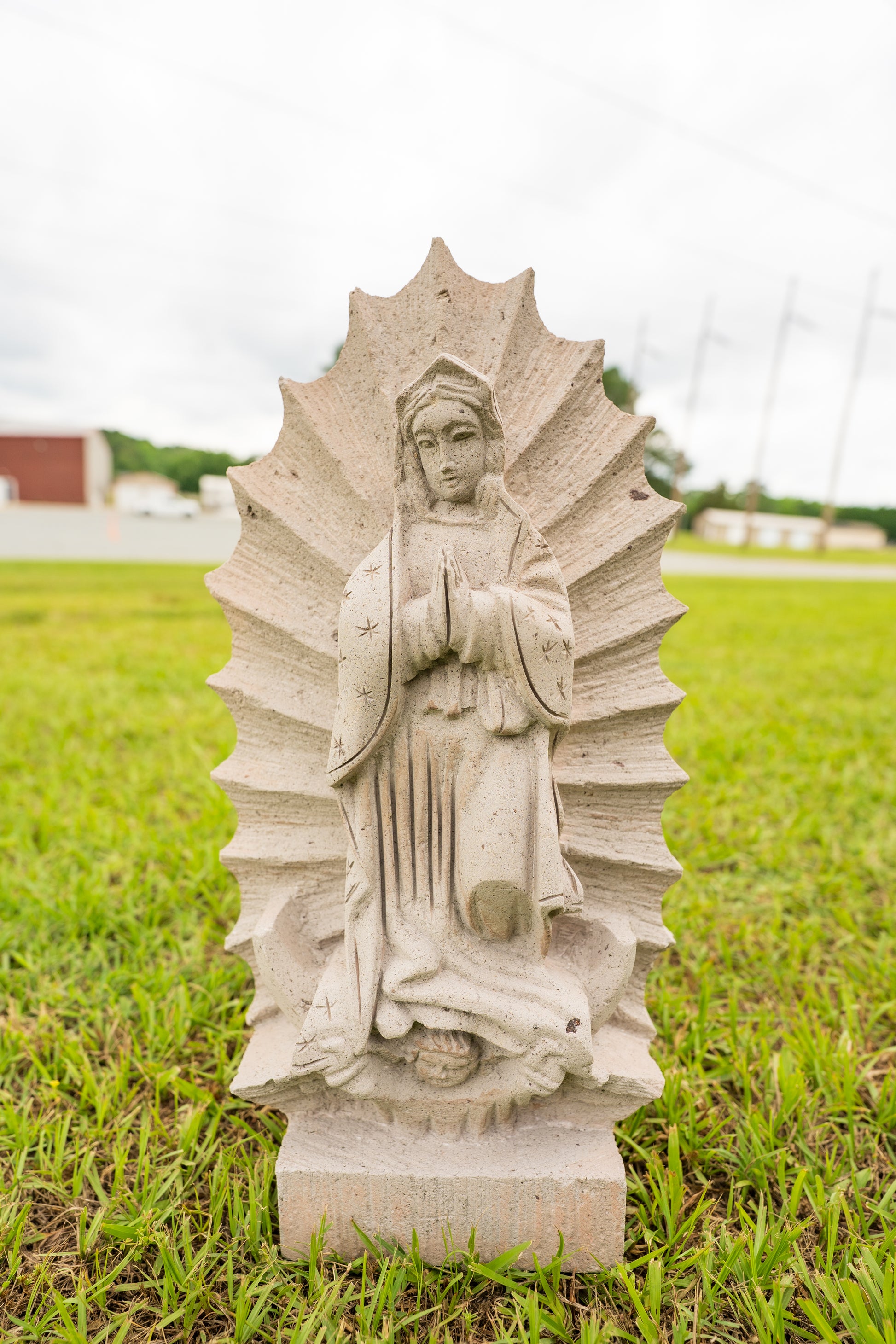 The holy figure stands 21” tall. Slight imperfections are part of the process. Indoor or covered use is recommended. No two are identical.