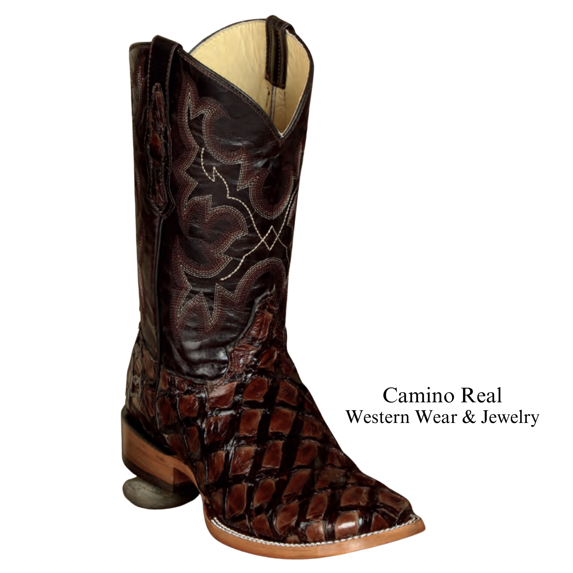 Men's Genuine Pirarucu (Monster-Fish) Rodeo Square Toe Boots