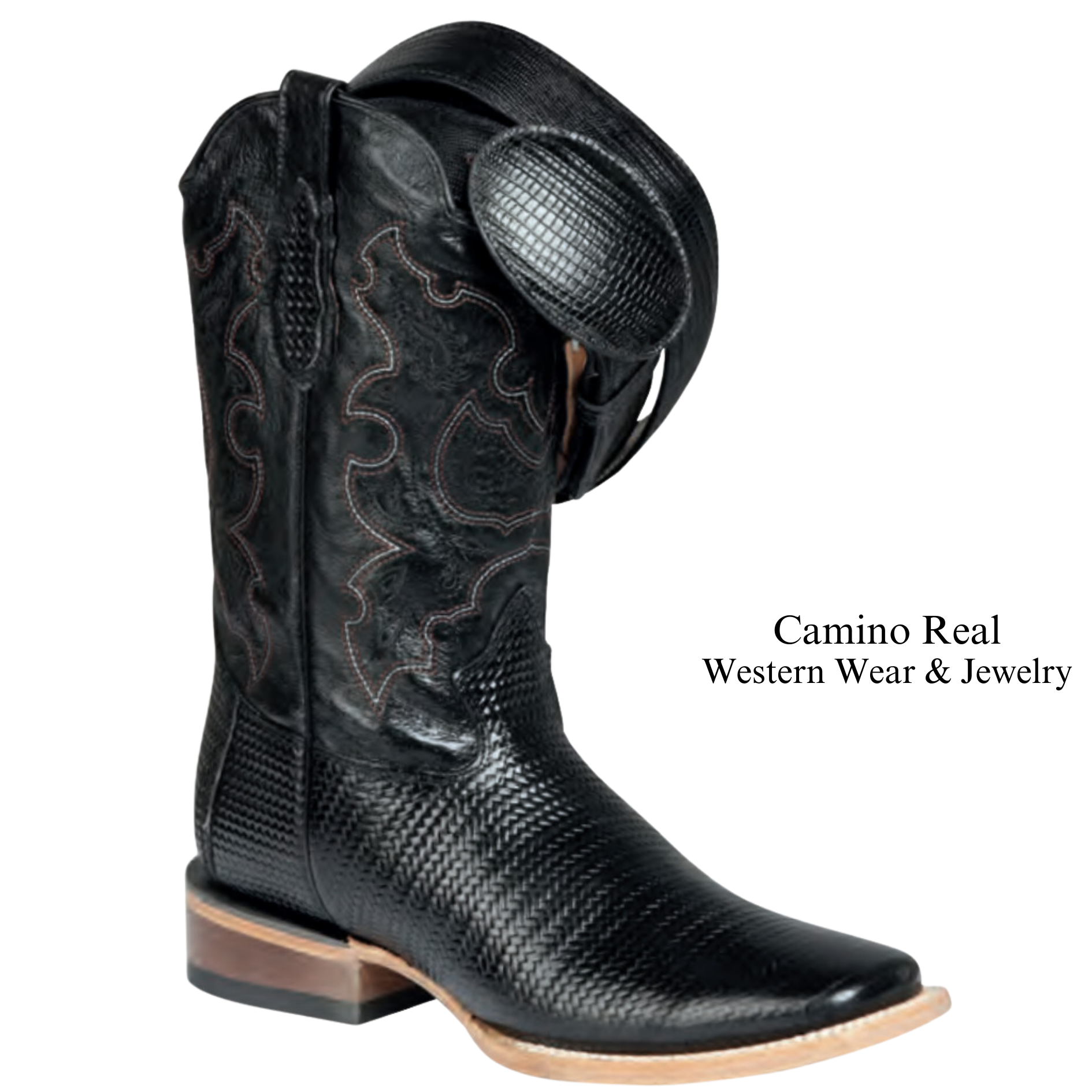 Men's Printed Woven Leather Rodeo Square Toe Boots