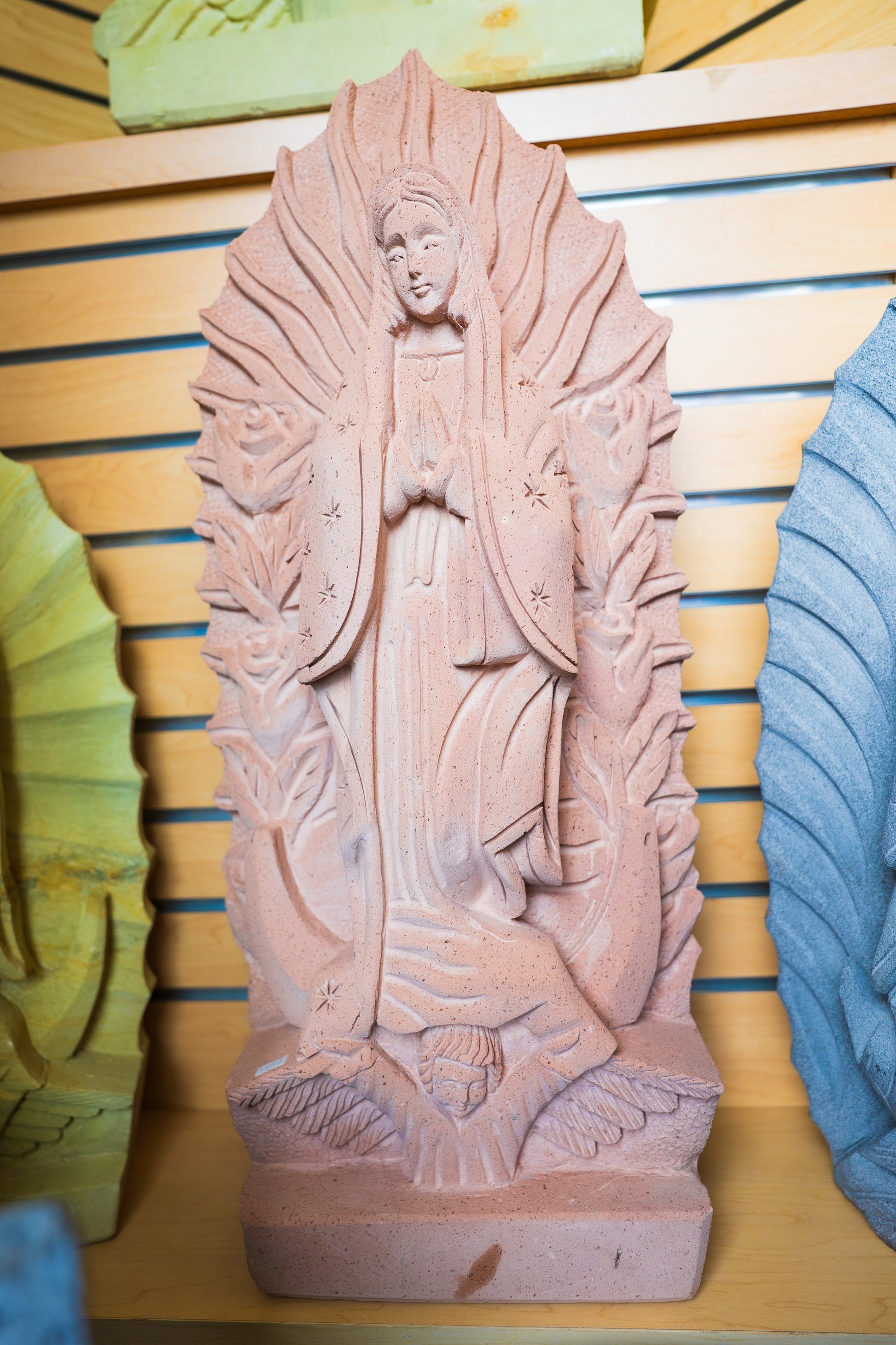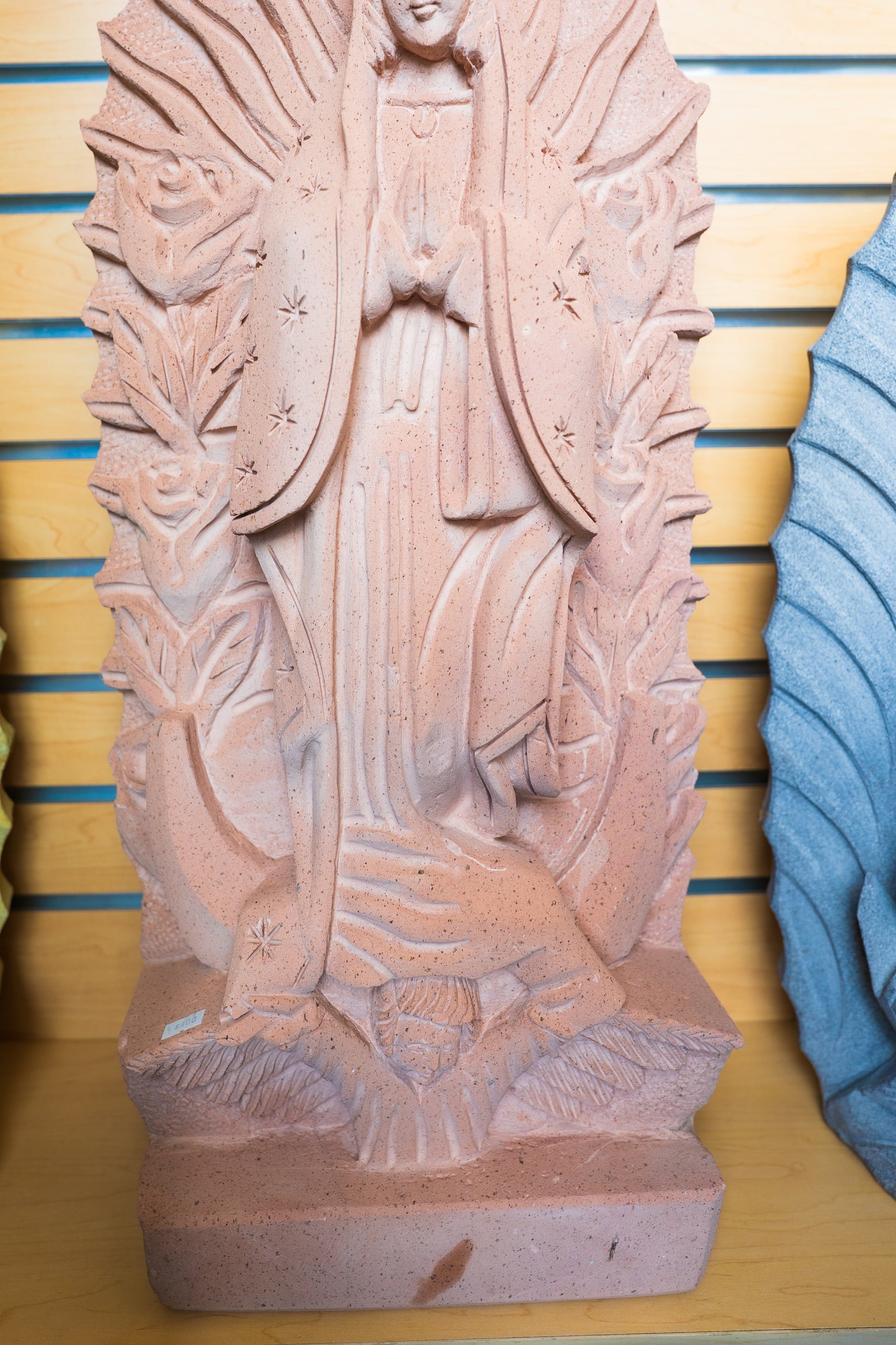 The holy figure stands 34” tall. Slight imperfections are part of the process. Indoor or covered use is recommended. No two are identical.