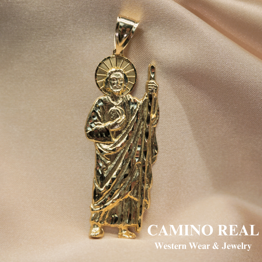 Elevate your collection with this exquisite St. Jude 14k Gold Charm, masterfully crafted in gleaming 14K gold.