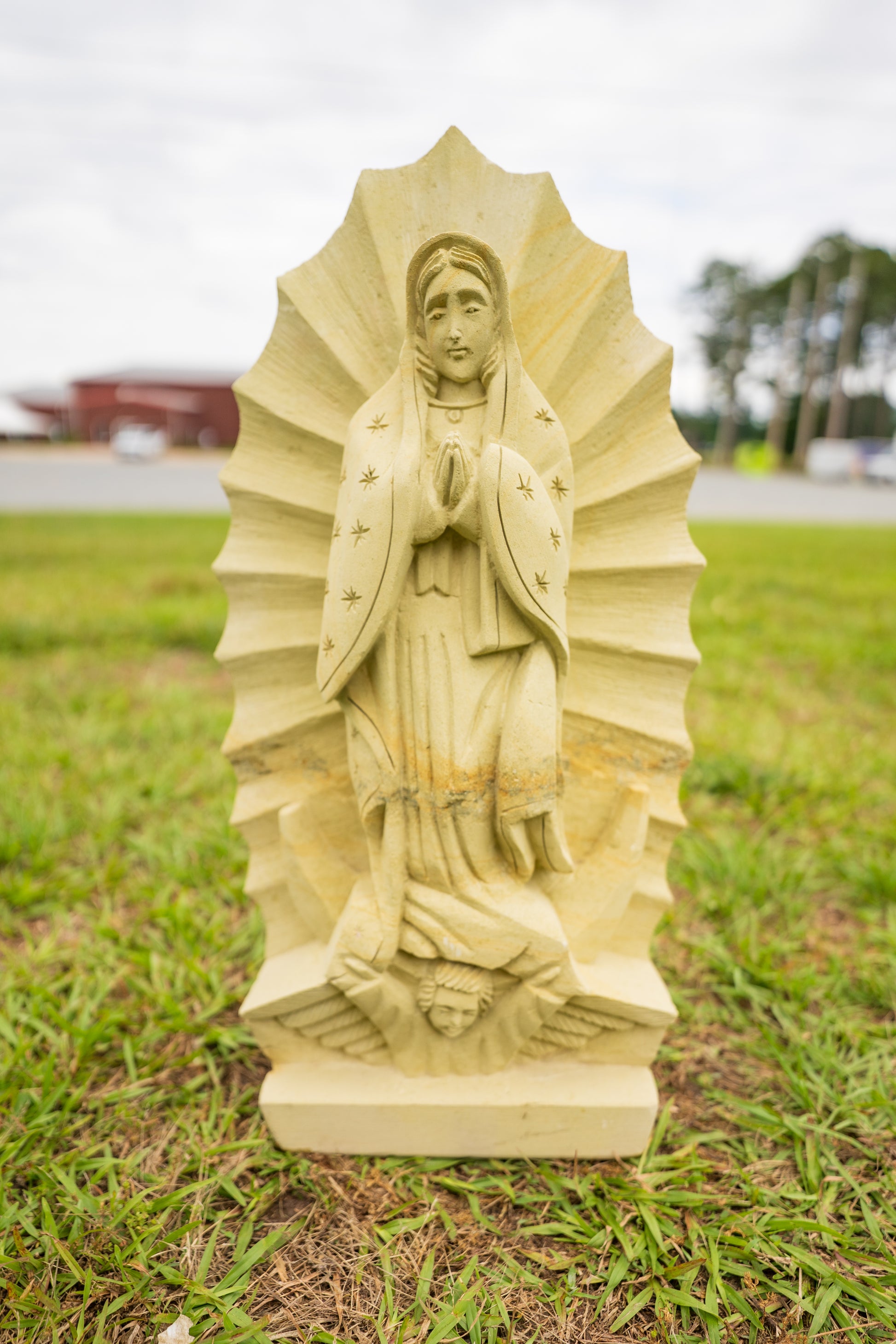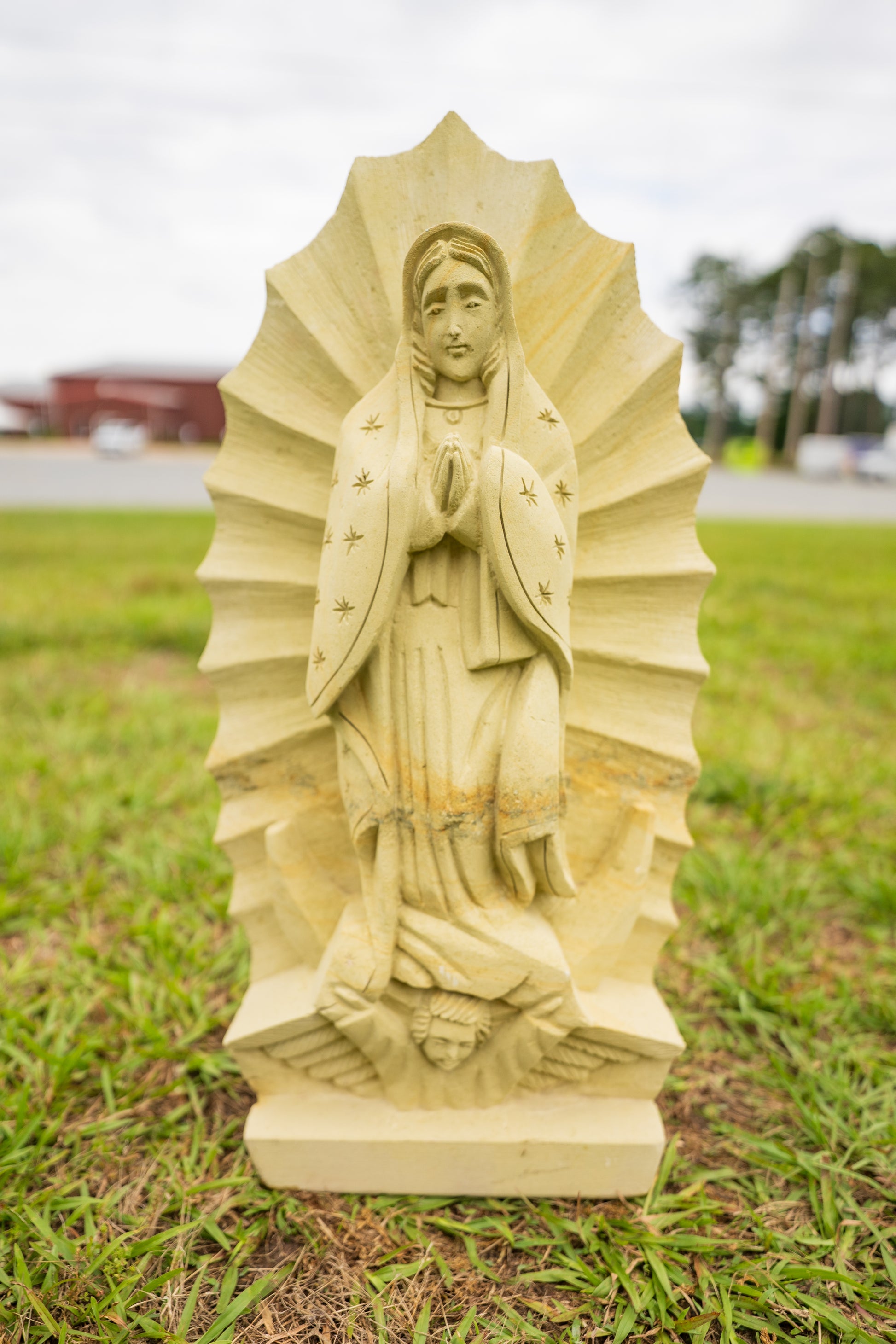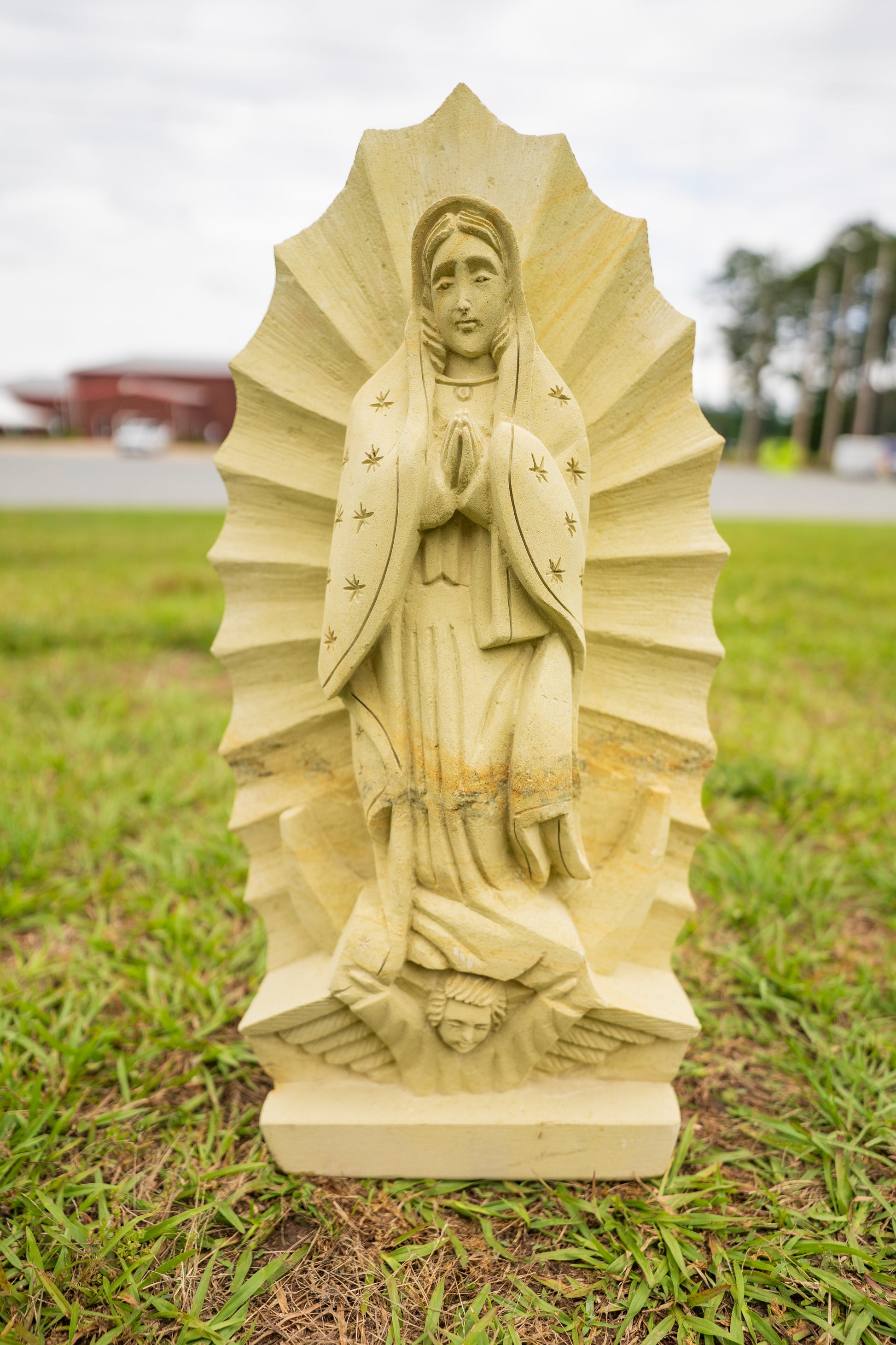 The holy figure stands 25” tall. Slight imperfections are part of the process. Indoor or covered use is recommended. No two are identical.